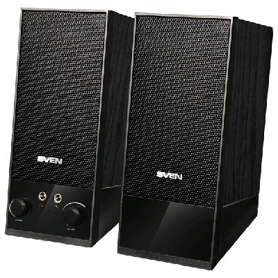 Благодаря питанию от порта USB колонки могут быть перенесены в любое место вслед за ноутбуком. SVEN SPS-604 имеют корпус из МДФ. На переднюю панель одной из колонок вынесена кнопка включения питания, регулятор общей громкости и разъемы для подключения наушников и микрофона.