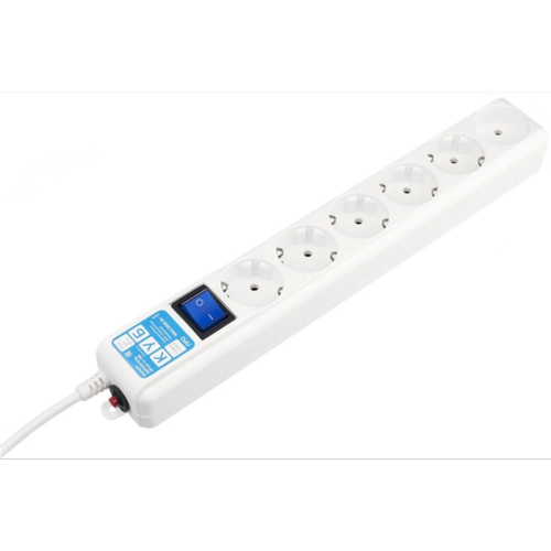 Сетевой фильтр Power Cube SPL6-16-P-5M оснащен шестью розетками с заземлением и общим выключателем. Устройство выдерживает нагрузку в 3500 Вт и работу при напряжении в сети 250 В. Модель дополнена предохранителями в виде многоразового термопрерывателя и варистора, системами защиты от перегрузки, короткого замыкания, высокочастотных и импульсных помех.
